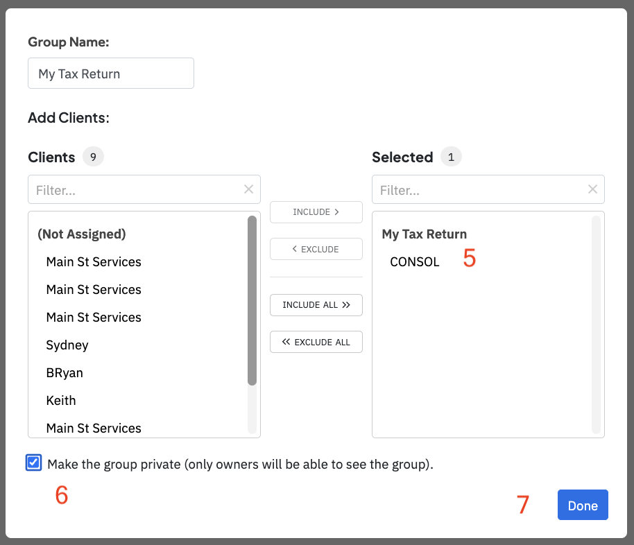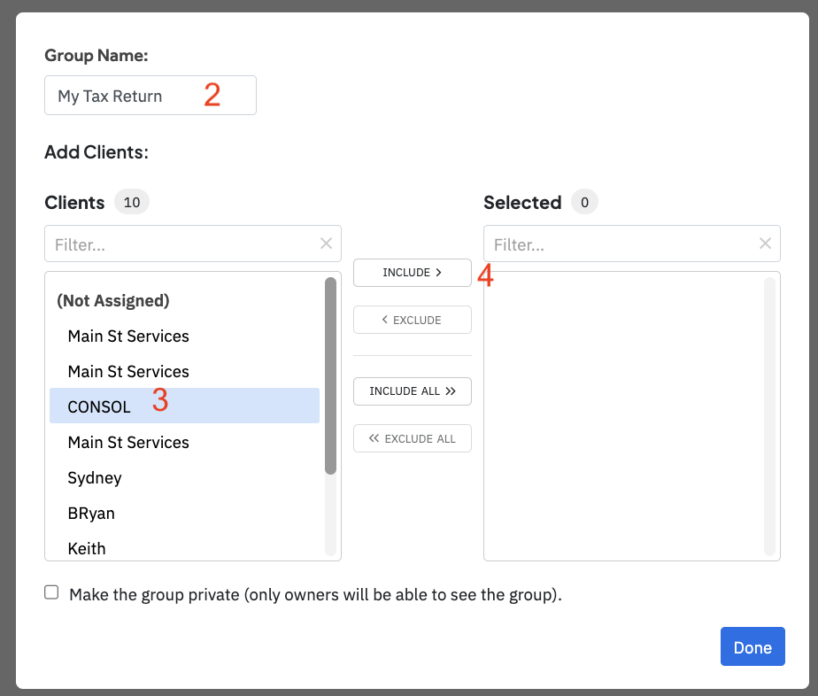 Firm owners can make a private client group to house the firm's and the owner's binders. To do so, follow the steps listed below.